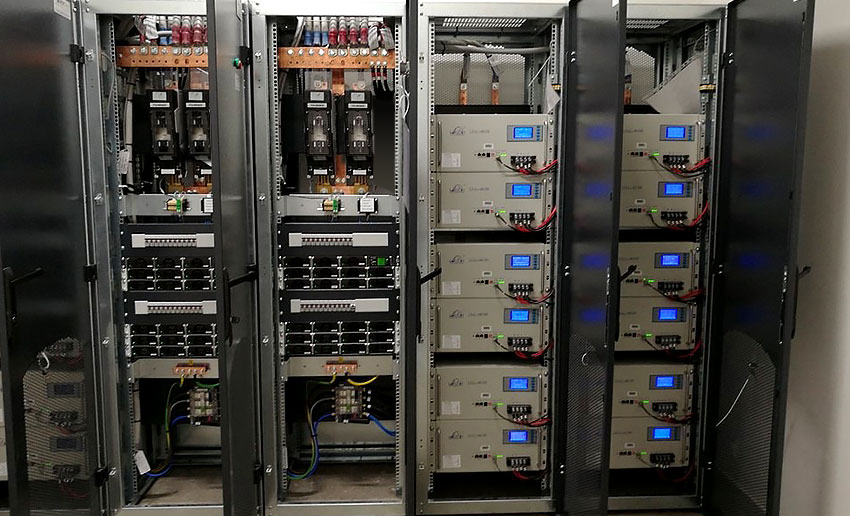 项目效果:80A负载电流,可备电10小时,满足后备时长需求,共用电源设备电池架安装。
